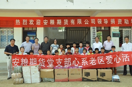 在金寨縣燕子河鎮(zhèn)茶鋪小學,安糧期貨黨支部代表公司全體員工為該校的18名經(jīng)濟困難學生送去了急需的電腦、體育器材以及千余本圖書,在捐贈儀式上,支部代表殷切寄語,希望同學們珍惜學習機會,珍惜美好時光,刻苦學習,奮發(fā)向上,努力成為國家的棟梁之才。
