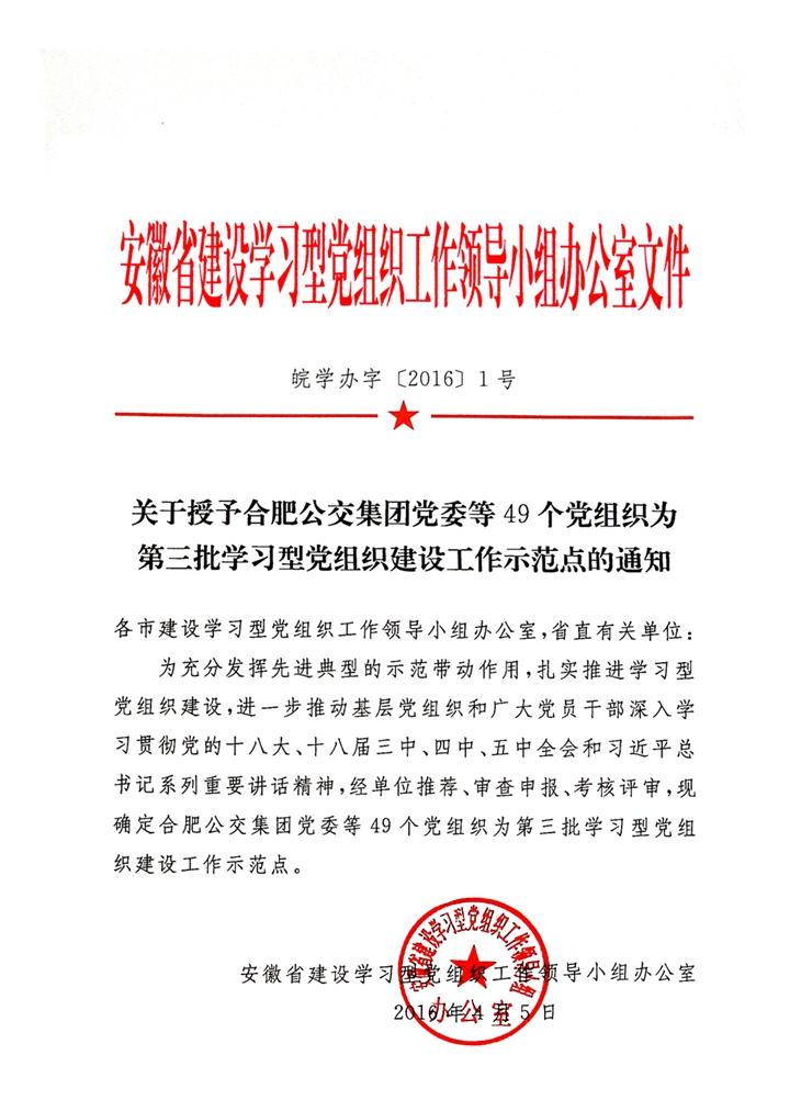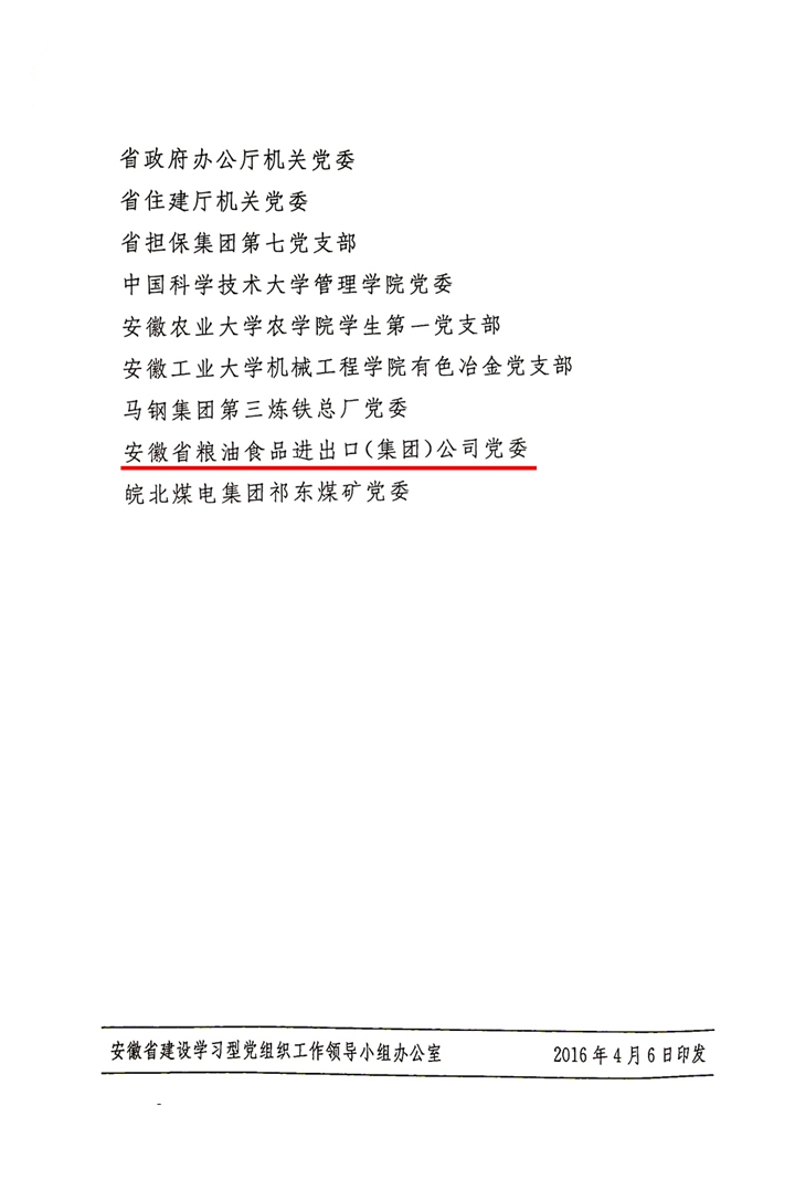 安糧集團黨委榮獲“安徽省第三批學(xué)習(xí)型黨組織建設(shè)工作示范點”榮譽稱號