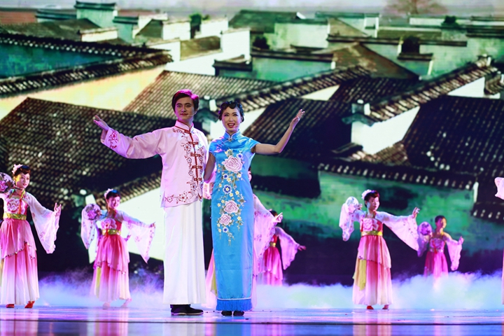 表彰結(jié)束后,安糧200余名員工獻上了悉心準(zhǔn)備、精彩紛呈的文藝演出。演出以“乘風(fēng)追夢”、“逐夢新生”、“夢想騰飛”三個篇章呼應(yīng)安糧集團四十年的歷史,涵蓋傳統(tǒng)黃梅歌舞、情景舞蹈、現(xiàn)代舞蹈、情景劇、器樂演奏以及安糧、控股領(lǐng)導(dǎo)班子參演的詩朗誦等不同風(fēng)格的節(jié)目。安糧員工曼妙的舞姿、出色的演技、動情的演繹折服了在場的觀眾,一次次將演出推向高潮,現(xiàn)場掌聲迭起。慶典在描寫安糧蓬勃發(fā)展,永續(xù)輝煌的大型歌舞《新征程 新希望》中落下帷幕,安糧集團成立四十周年慶典圓滿結(jié)束,安糧集團四十周年系列慶?;顒又链水嬌蠄A滿的句號。