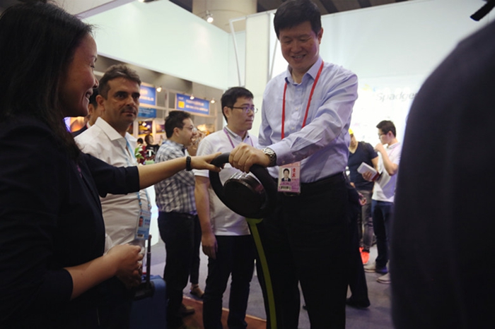 張副省長一行領導詳細詢問了安糧進出口業(yè)務經營發(fā)展狀況,并對現場展出的安糧自主品牌——Spadger(賓雀)品牌平衡車、電動滑板車等出口新產品產生了濃厚興趣。省商務廳張箭廳長還親自體驗了展位熱點產品——Spadger(賓雀)平衡車的駕駛樂趣。