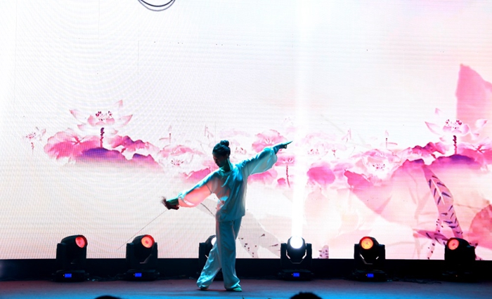才藝展示環(huán)節(jié),選手們拿十八般武藝,各顯其能。一身素衣、文劍配身的王毓薇似仙子臨凡,在水墨丹青的畫卷中,挑云撥霧,仙姿綽約;李雨馨如青蓮婉出,纖指弄弦,撥一曲《酒狂》,古琴雅韻傳新聲;而有著溫柔端莊主持風格的宣麗萍,意外地用充滿異域風情的肚皮舞,給我們展示了多才和熱辣的一面。