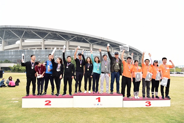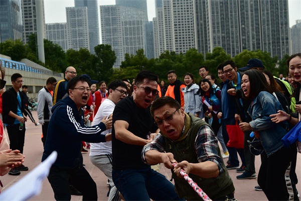 上午9點半,在簡短的開幕式后,別開生面的競賽項目陸續(xù)登場,八支隊伍各顯風采。五人六足項目首先登場,步伐一致是該項目的制勝法寶,東倒西歪的令人捧腹,中途摔倒的令人嘆息,安糧地產(chǎn)代表隊最終勇拔頭籌;摸石過河考驗手足協(xié)調(diào),安糧期貨熊青寶快速突圍,棋高一著;跳大繩的關(guān)鍵是快和穩(wěn),安糧國際一鼓作氣,幾乎零失誤,遙遙領先;踢毽子比賽靈巧之中顯真功夫,集團本部方嘉亮身手不凡,技壓群英;自行車競慢,平靜中見驚奇,合肥建工黃玉璟獨樹一幟;托球接力跑,一考凌波微步,二比掌上功夫,安糧實業(yè)笑到最后;呼啦圈競走難在“左右互博”,安糧小貸張媛媛最具神通;拔河項目是力量的較量,建工一隊勢如犇牛,盡展雄風;滾鐵環(huán)項目,作為童年的回憶,也漸漸成為回憶中的項目,安糧控股潘冬生副總裁帶大家領略了老前輩的少年風采;50米折返跑接力作為本屆比賽的壓軸大戲,最為矚目,集團聯(lián)隊一騎絕塵!十項比賽結(jié)束,“有趣”的一天也臨近尾聲,8支隊伍各領風騷,獎牌背后,團結(jié)奮進是制勝的終極秘訣。
