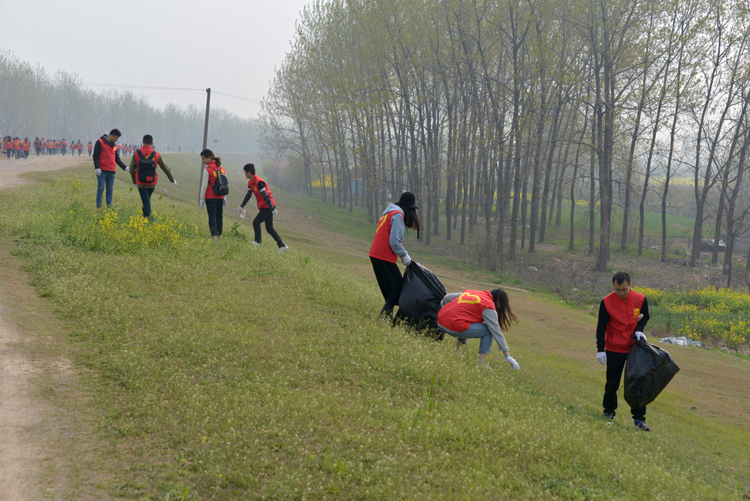 本次環(huán)保毅行路線全長7.2公里,全體人員被分為13個小組,每個小組承包約500米路段的垃圾清理工作。在每組組長的帶領(lǐng)下,團員青年們積極行動,不遺余力地對沿途白色垃圾展開“地毯式”搜尋。經(jīng)過大家近三個小時的共同努力,毅行所經(jīng)大堤上煥然一新。通過這次行動,團員青年們?yōu)楸Wo淮河生態(tài)環(huán)境盡自己的一份力,更是體會到“綠水青山就是金山銀山”的意義。