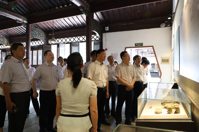 在瑤崗渡江戰(zhàn)役總前委舊址,黨員同志們在現(xiàn)場講解員的帶領(lǐng)下,認(rèn)真觀看渡江戰(zhàn)役紀(jì)錄片,細(xì)致瀏覽一張張泛黃的歷史照片和珍貴的文獻(xiàn)實物,仔細(xì)端詳著陳舊卻依舊閃光的戰(zhàn)斗槍支、大刀和一件件浸潤著先烈血汗的棉褥、草鞋,在生動的講述中,感受70年前那段慷慨激昂、艱苦卓絕的革命歲月。