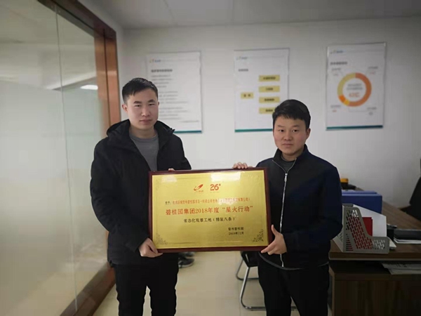 楊勇同志(右)代表團隊領(lǐng)取碧桂園“星火行動”觀摩工地獎