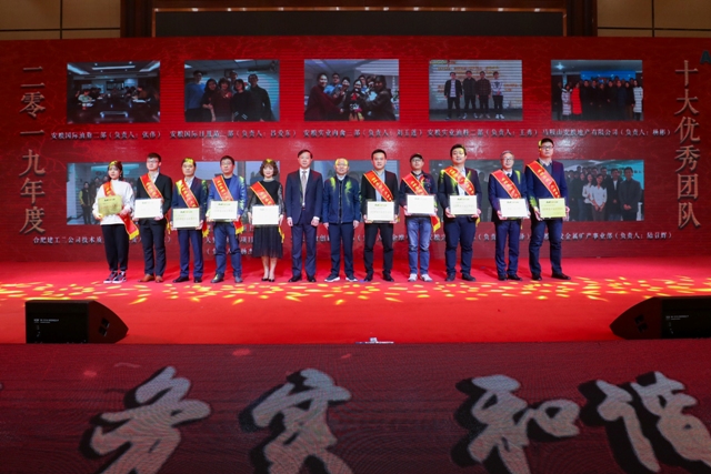 為總結(jié)經(jīng)驗(yàn)、鼓勵(lì)先進(jìn),集團(tuán)對2019年度涌現(xiàn)出的先進(jìn)集體和優(yōu)秀個(gè)人進(jìn)行了表彰,安糧集團(tuán)黨委副書記、紀(jì)委書記孫毅宣讀了《關(guān)于表彰2019年度先進(jìn)集體和個(gè)人的決定》。集團(tuán)領(lǐng)導(dǎo)為合肥建工、安糧國際、安糧實(shí)業(yè)三家“先進(jìn)單位”以及“十大優(yōu)秀團(tuán)隊(duì)”、“十大優(yōu)秀經(jīng)理”、“十大優(yōu)秀員工”進(jìn)行頒獎(jiǎng)。合肥建工陳龍、安糧控股陸召輝、安糧國際張偉分別作為獲獎(jiǎng)代表上臺(tái)發(fā)言。