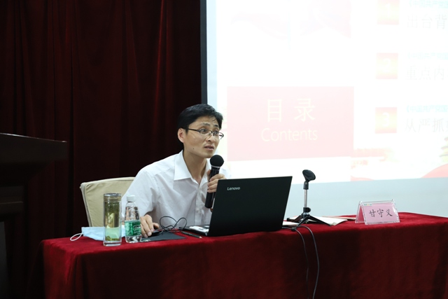 在兩個小時的課程中,甘教授充分聯(lián)系《條例》制定的背景、內容和具體貫徹落實等三個方面對《條例》進行了全面解讀,并深入詮釋了《條例》作為我們黨關于國有企業(yè)第一部重要黨內法規(guī)的重要意義。