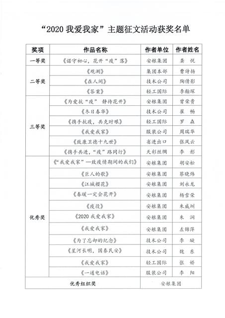 為弘揚家國情懷、豐富企業(yè)文化,國貿集團工會組織開展了“2020我愛我家”主題征文活動。安糧集團工會積極參與,最終斬獲多項獎項,以最佳的姿態(tài)畫上圓滿的句號。