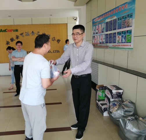 8月12日上午,安糧集團副總裁、安糧實業(yè)董事長吳國杰,赴安可福食品有限公司開展調(diào)研工作并代表安糧集團工會向一線人員工發(fā)放了礦泉水、仁丹、毛巾等防暑降溫用品,慰問奮戰(zhàn)在高溫生產(chǎn)一線的員工,叮囑大家在疫情期間尤其要注意做好防暑降溫,把身體健康放在第一位。