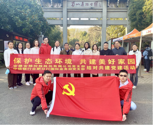 為貫徹落實(shí)習(xí)近平總書(shū)記提出的“綠水青山就是金山銀山”理念,樹(shù)立保護(hù)生態(tài)環(huán)境的主人翁意識(shí),共建生態(tài)綠色家園。12月5日,安徽控股黨支部與中信銀行合肥分行國(guó)際業(yè)務(wù)部黨支部在蜀山森林公園舉辦主題為“保護(hù)生態(tài)環(huán)境,共建美好家園”的結(jié)對(duì)共建黨建活動(dòng)。安糧控股黨支部書(shū)記武義海、中信銀行合肥分行國(guó)際業(yè)務(wù)部黨支部書(shū)記凌曉潔等參加活動(dòng)。