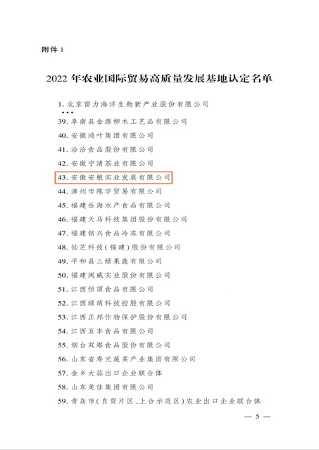 安糧實(shí)業(yè)獲評(píng)農(nóng)業(yè)國(guó)際貿(mào)易高質(zhì)量發(fā)展基地