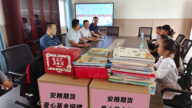 安糧期貨本著國企擔當、踐行社會責任、關注關愛鄉(xiāng)村兒童教育,由黨支部發(fā)起,全體員工積極響應,實施“助學筑夢計劃”,助力鄉(xiāng)村振興。本次活動作為“助學筑夢計劃”之一,旨在通過圖書傳遞愛心、撒播知識的種子,勉勵同學們努力學習,掌握本領,樹立遠大理想抱負,早日長成祖國棟梁。