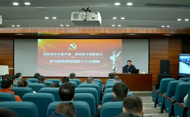 何汝才書記為安糧國際50余名黨員作了“深刻領會豐富內(nèi)涵 團結奮斗勇毅前行——學習宣傳貫徹黨的二十大精神”主題宣講。 他從深刻領會黨的二十大會議的重要意義、精神實質(zhì)、弘揚偉大建黨精神、深刻領會以中國式現(xiàn)代化推進中華民族偉大復興的歷史重任等四個方面系統(tǒng)、深入地解讀了黨的二十大精神重大意義、主題內(nèi)涵及核心內(nèi)容,并結合海螺集團、安徽國貿(mào)的發(fā)展對所有黨員干部作出要求。他強調(diào),學習宣傳貫徹黨的二十大精神是公司當前和今后一個時期的重大政治任務,要深刻領會黨的二十大報告對堅定不移全面從嚴治黨、深入推進新時代黨的建設偉大工程作出的重要部署;要堅持學思用貫通,聚焦主責主業(yè),堅持高質(zhì)量發(fā)展,切實把黨的二十大精神落實到各項具體工作和實際行動中,展現(xiàn)更大擔當作為,為海螺集團“爭創(chuàng)世界一流企業(yè)”貢獻更大力量。