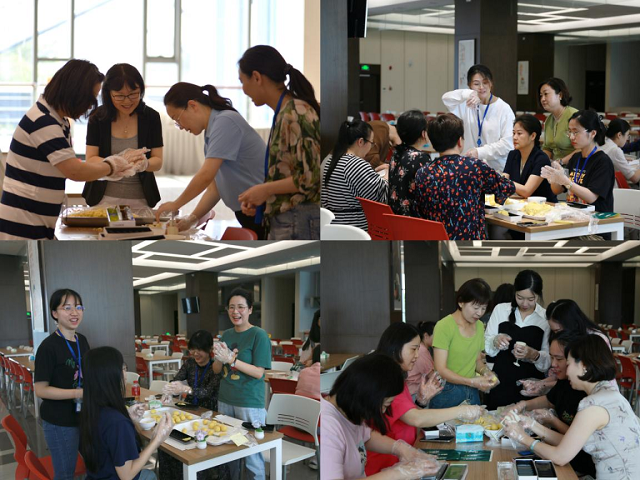 接著進(jìn)入了大家最躍躍欲試的環(huán)節(jié)——DIY綠豆糕。同事們圍坐一堂,有的揉面,有的裝模,有的擺盤,有的包裝,大家一邊認(rèn)真制作,一邊相互交流。在大家精心制作下,一個(gè)個(gè)、一盒盒香甜美味、花色各異的綠豆糕呈現(xiàn)在眼前。活動(dòng)現(xiàn)場其樂融融,洋溢著和諧、平安與幸福的氛圍,大家一起感受親手制作綠豆糕帶來的歡樂。