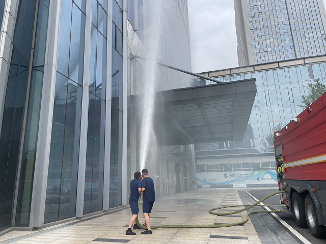 6月24日下午3時,消防應急演練總指揮下達演練開始指令。隨著煙霧彈在辦公樓內拋擲,煙霧觸發(fā)安糧中心辦公樓火警警報,頓時消防警報和消防警鈴響起。隨后各小組迅速按照部署展開滅火救援行動,消防和應急救援隊員有序引導員工緊急疏散撤離至避難層,緊接著包河區(qū)應急救援大隊消防救援車輛到達現(xiàn)場,開展了火情偵查、外圍滅火等系列滅火救援行動。整個演練過程中,各小組配合默契、分工有序,圓滿完成了緊急報警、警戒疏散、醫(yī)療救護和滅火救援等演練環(huán)節(jié),及時排除了火災險情,有效達到了演練目的和預期效果。