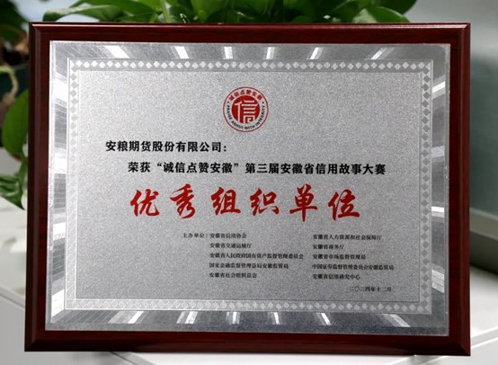 近日,“誠信點贊安徽”第三屆安徽省信用故事大賽結(jié)果揭曉,安糧期貨憑借微電影《用堅守筑牢誠信基石》,成功斬獲優(yōu)秀獎,并榮獲優(yōu)秀組織單位稱號,為公司誠信建設(shè)添上了濃墨重彩的一筆。