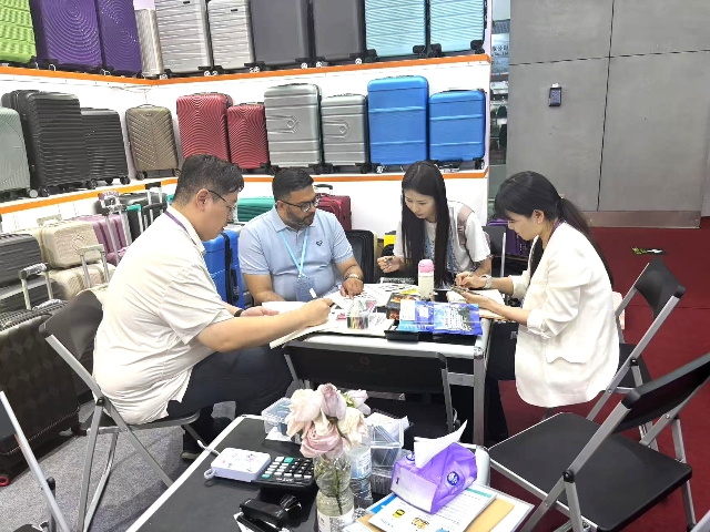 箱包展區(qū)推出70余款不同材質(zhì)和設(shè)計的產(chǎn)品,如超輕材質(zhì)PP拉桿箱、ABS拉桿箱、旅行布箱等。其中PP拉桿箱因其高性價比,受到歐洲、中東、南美客商青睞。參展期間,業(yè)務(wù)團隊根據(jù)客商反饋,及時調(diào)整展品布置,確保每日展出的箱包品類與陳列形式持續(xù)更新,大大提升了客戶體驗。