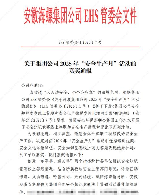 近日,集團(tuán)公司對在2025年“安全生產(chǎn)月”活動中表現(xiàn)突出的單位和個人予以表彰,安糧期貨堅決落實(shí)集團(tuán)公司部署要求,廣泛發(fā)動員工積極參與,獲評活動最佳組織單位。