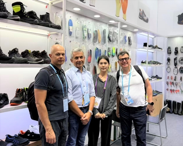 在工具類展區(qū),安糧在常規(guī)安全鞋產(chǎn)品基礎(chǔ)上,新增勞保手套、多功能剪刀、冰爪、反光材料等多款新產(chǎn)品,全面覆蓋戶外安全防護(hù)場(chǎng)景,凸顯“專業(yè)性”與“全面性”雙重優(yōu)勢(shì)。為讓客戶直觀感受產(chǎn)品品質(zhì),展區(qū)采用原木色層板與洞洞板靈活組合的裝修設(shè)計(jì),方便客戶觸摸、體驗(yàn)產(chǎn)品的材質(zhì)、工藝與功能,如拉扯勞保手套的耐磨度、體驗(yàn)多功能剪刀的剪切效果、查看反光材料在模擬黑暗環(huán)境下的警示亮度。目前已有來自法國(guó)的戶外用品品牌商提出樣品寄送需求,另有來自智利的的安全防護(hù)設(shè)備經(jīng)銷商明確表達(dá)長(zhǎng)期合作意向。